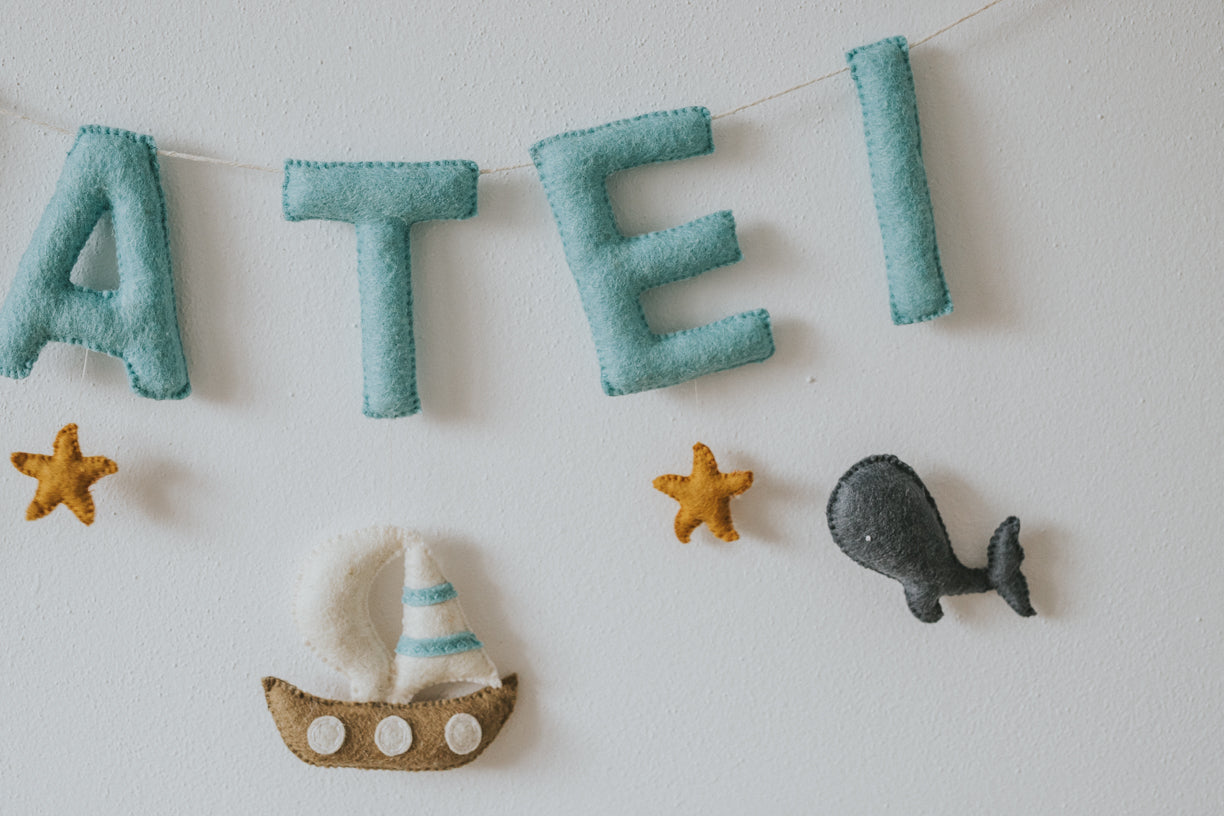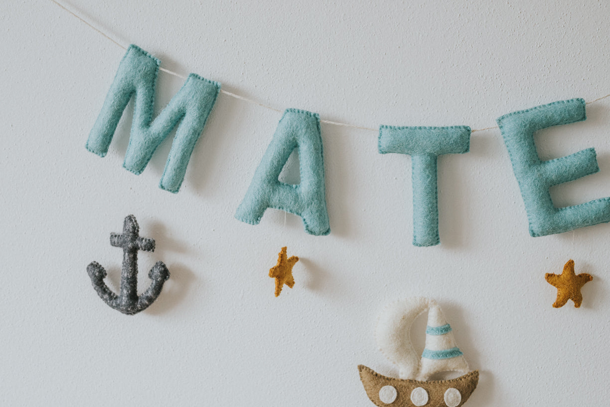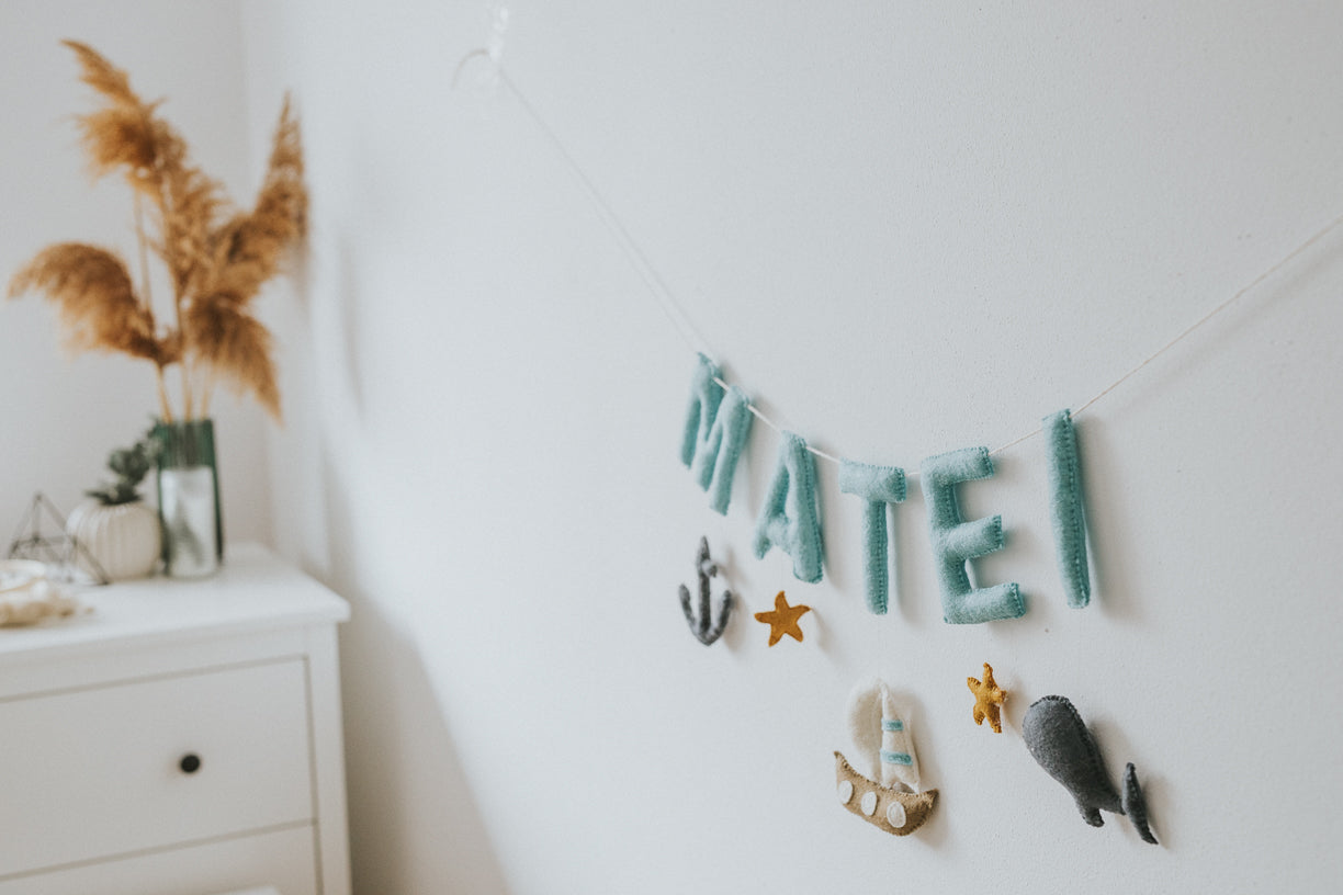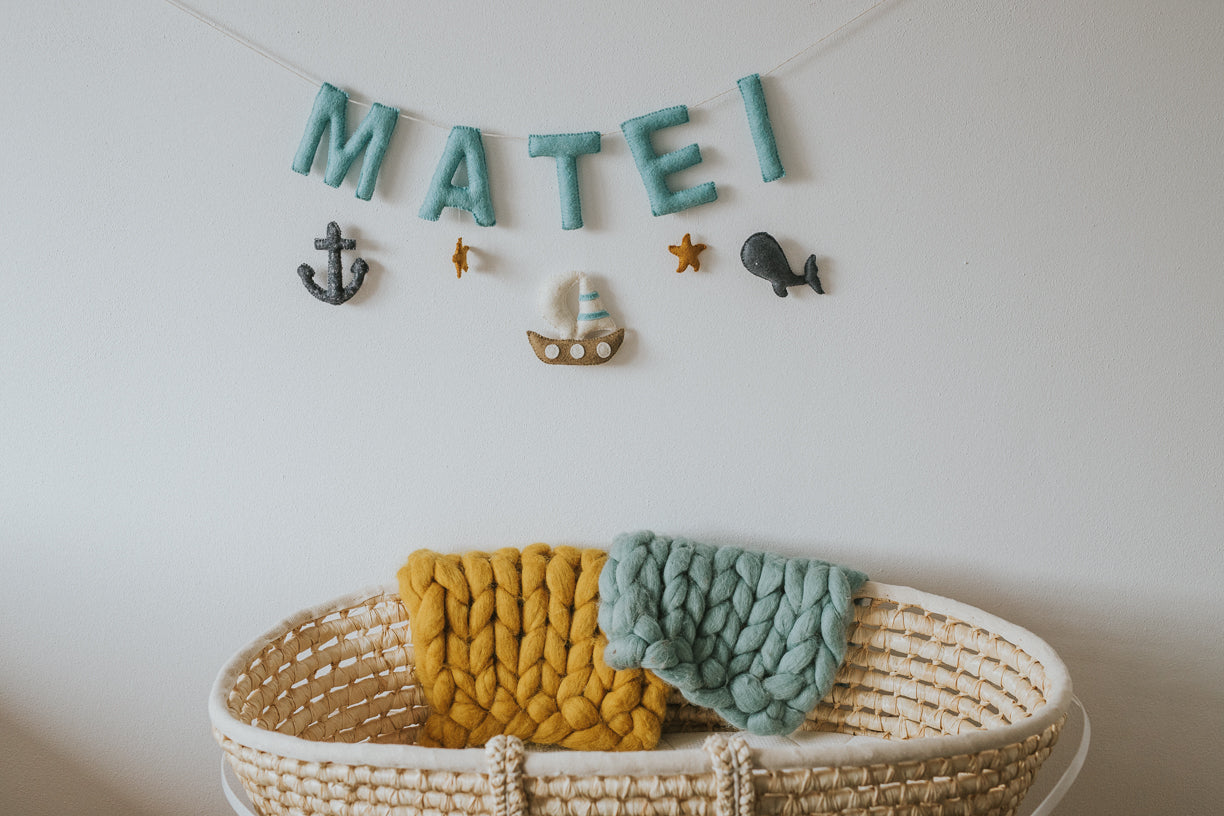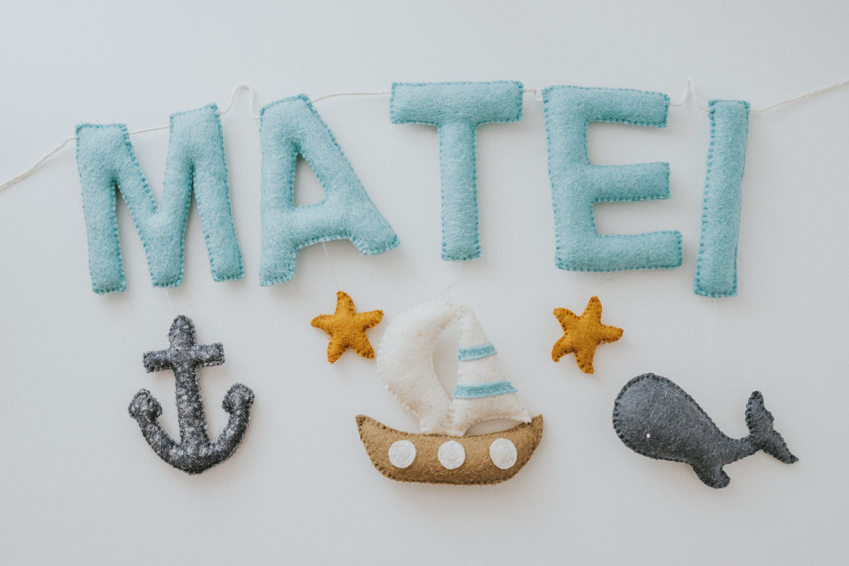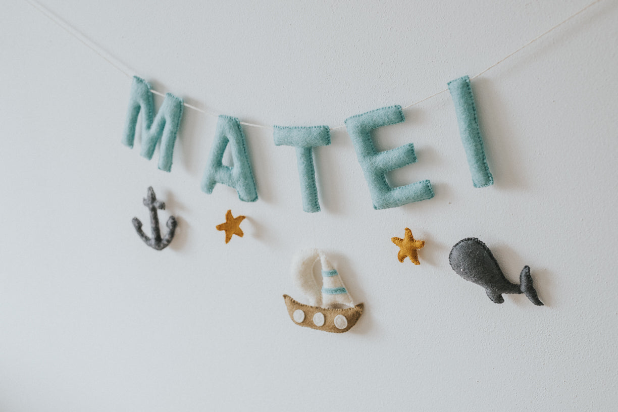 Descriere: Ghirlanda cu nume este ideala pentru decorarea camerei copilului tausau pentru a fi daruita cadou cuiva drag cu diverzi ocazii( nasterea bebelusului, botez, aniversare)